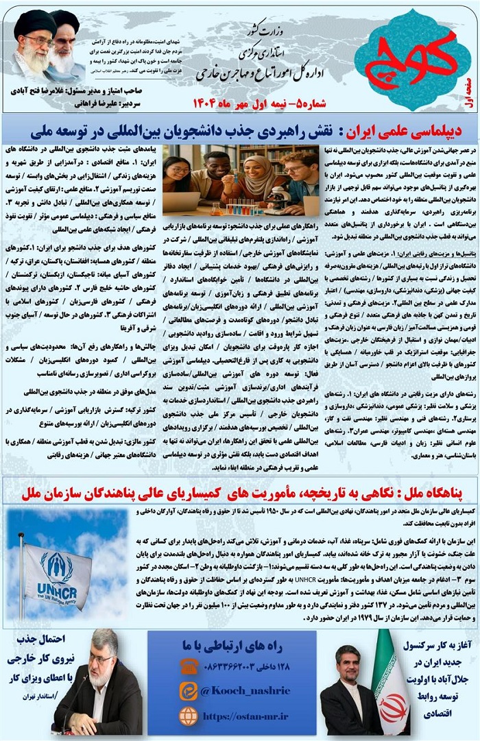 پنجمین شماره نشریه کوچ، توسط دفتر امور اتباع و مهاجرین خارجی استان مرکزی منتشر گردید.