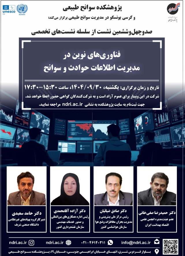 نشست فن آوری نوین در مدیریت اطلاعات حوادث وسوانح ۳۰ آذر ۱۴۰۴ | ۱۲:۰۴ کد : ۵۷۱۴۹ اطلاعیه ارسال به دیگران نام شما ایمیل شما ایمیل دریافتکننده ارسال انصراف تعداد بازدید:۱۵۰۵ دعوتنامه نشست فن آوری نوین در مدیریت اطلاعات حوادث وسوانح